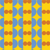Colors: The Retro Rain Poncho features alternating yellow and blue stripes, with orange circles on the yellow sections and playful yellow star-like shapes on the blue, creating a vivid, fun, and energetic look. The reverse side is plain blue.