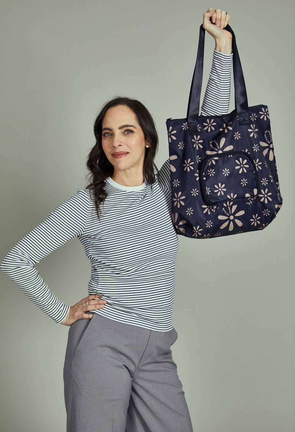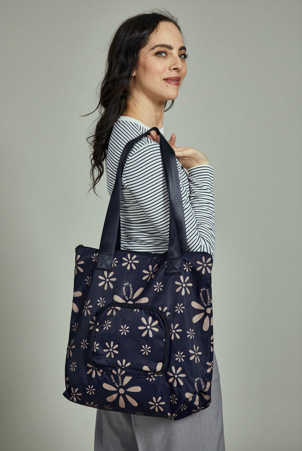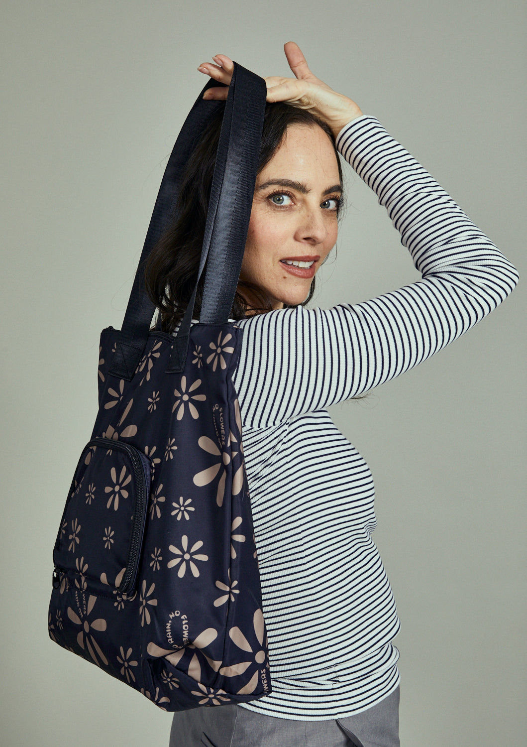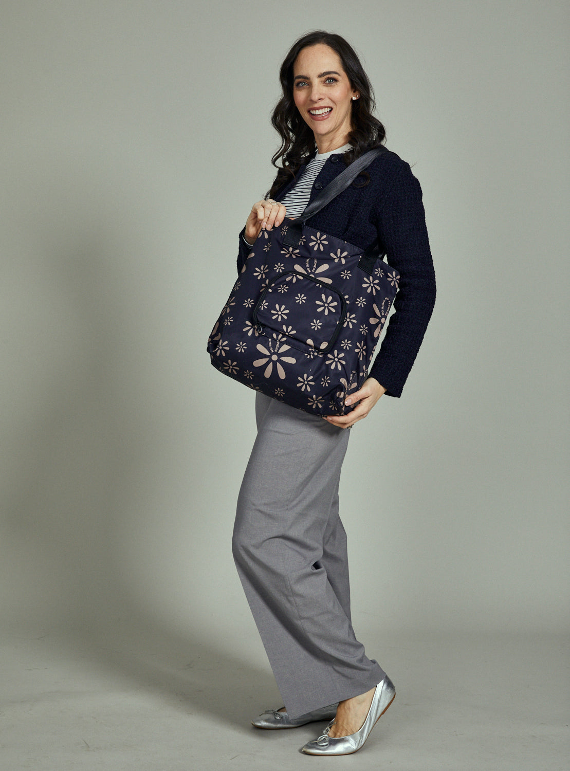 Colors: The Timbo Tote Bag features a beautiful golden brown floral print.